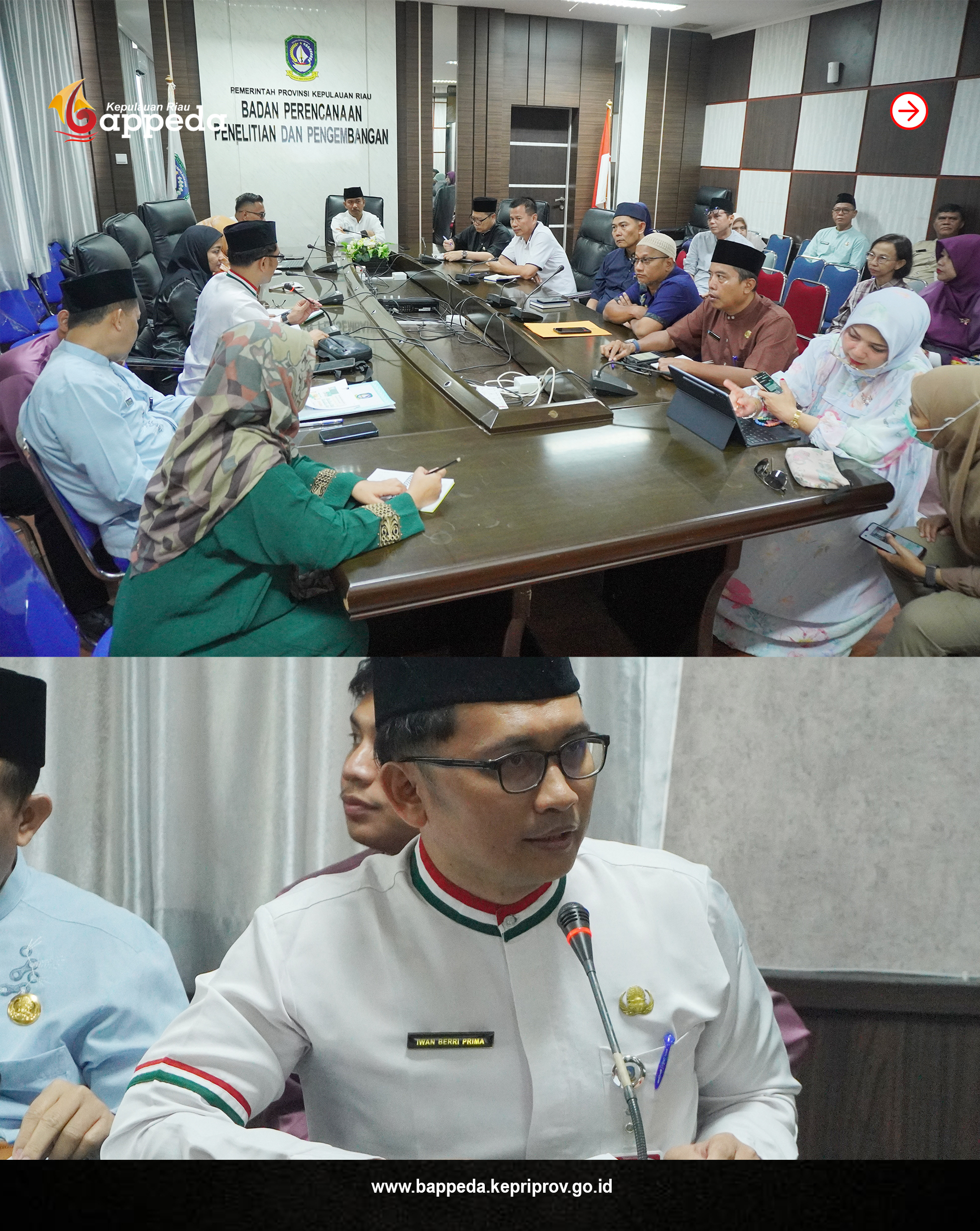 Kepala Bappeda Provinsi Kepulauan Riau Aries Fhariandi selaku Koordinator Pameran Pembangunan pada event Kepulauan Riau Ramadhan Fair (Kurma) memimpin rapat teknis pembahasan konsep dan konten stand pameran, Senin (23/2), di Ruang Rapat Bappeda Lantai 2, Dompak, Tanjungpinang. Rapat tersebut dihadiri oleh perwakilan Organisasi Perangkat Daerah (OPD) yang akan berpartisipasi dalam memeriahkan stand pameran pembangunan pada ajang tahunan tersebut.
