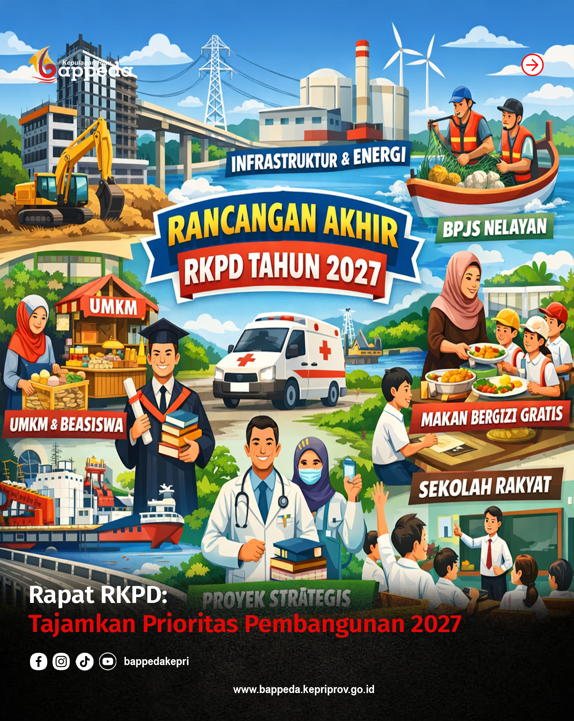Rapat ini diikuti oleh berbagai unsur, mulai dari sekretariat daerah, dinas-dinas teknis, badan, hingga instansi pendukung lainnya di lingkungan Pemerintah Provinsi Kepulauan Riau. Melalui pembahasan ini, Pemerintah Provinsi Kepulauan Riau menargetkan penyusunan RKPD Tahun 2027 dapat berjalan optimal dan menjadi landasan kuat dalam mendorong pembangunan daerah yang berkelanjutan dan berdaya saing.