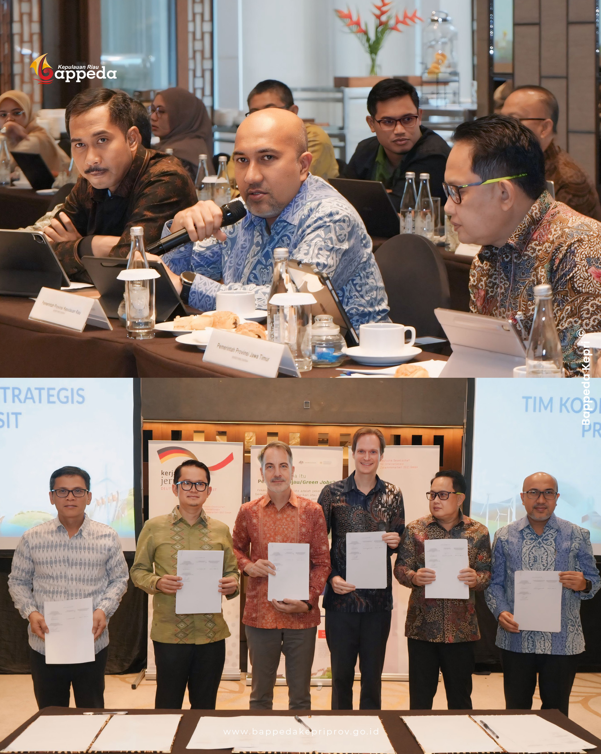 Deutsche Gesellschaft Für Internationale Zusammenarbeit (Giz) Gmbh Tentang Pelaksanaan Kerja Sama Proyek Pekerjaan Hijau (Green Jobs) Untuk Inklusi Sosial Dan Transformasi Berkelanjutan Di Provinsi Kepulauan Riau, di Jakarta. Pihak Pemerintah Provinsi Kepri diwakili oleh Penjabat Sekretaris Daerah Bapak Luki Zaiman Prawira serta di dampingi Kepala Bappeda, Perwakilan Dinas Pendidikan dan Dinas Tenaga Kerja dan Transmigrasi Provinsi Kepri.